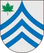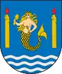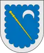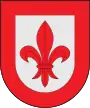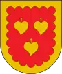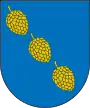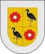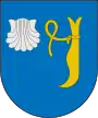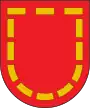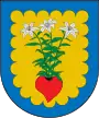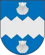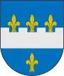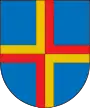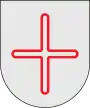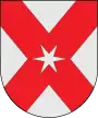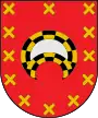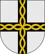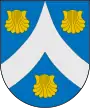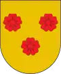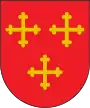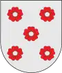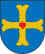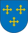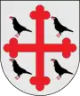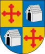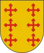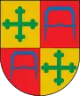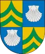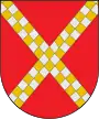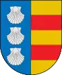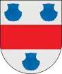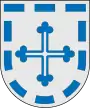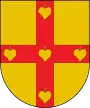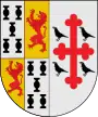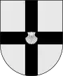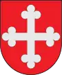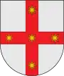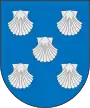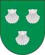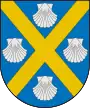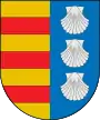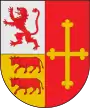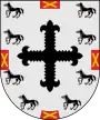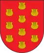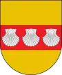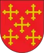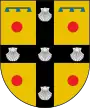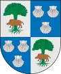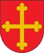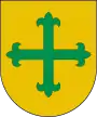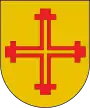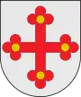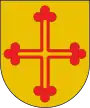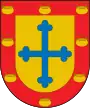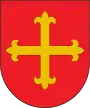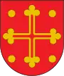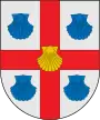 De gules, cruz trebolada de oro, cantonadas de cuatro veneras de plata. |