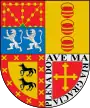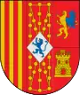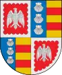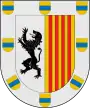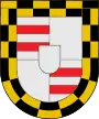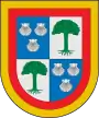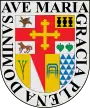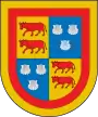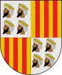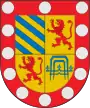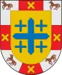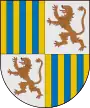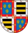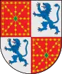 Cuartelado: 1 cortado: a. de gules, medio carbunclo, cerrado pomelado de oro naciente de la partición; b. de azul, dos leones de plata uno junto a otro; 2 de oro, tres calderas de gules, ceñidas de dos de oro, en pal; 3 de oro, dos lobos de sable, bordura de gules con doce aspas de oro; 4 de gules, cruz treboladas de oro, bordura de plata con la divisa: AVE MARÍA GRATIA PLENA DO... |