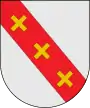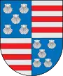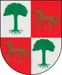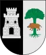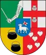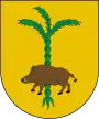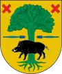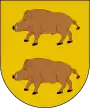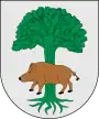 Cuartelado: 1 y 4 de oro, árbol verde, jabalí al natural brochante; 2 y 3 de gules, faja de oro. |
