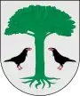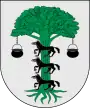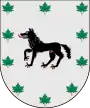 De oro, árbol verde, una loba de sable que amamanta a dos lobeznos, de su color, brochante. |