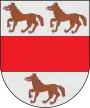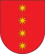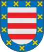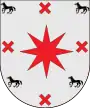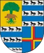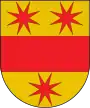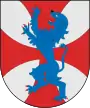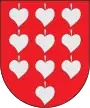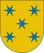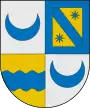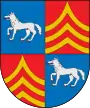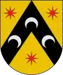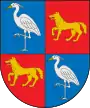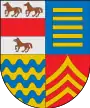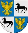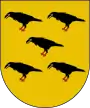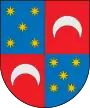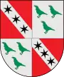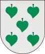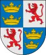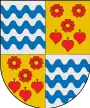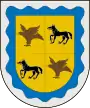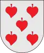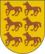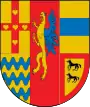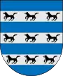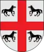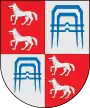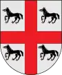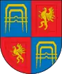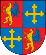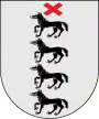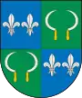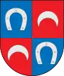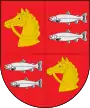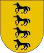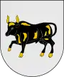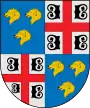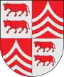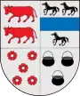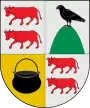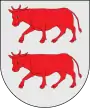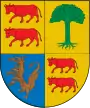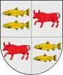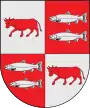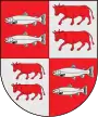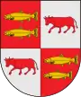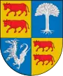 Cuartelado: 1 y 4 de oro, dos vacas de gules; 2 de azul, árbol de plata, 3 de azul, hidra de tres cabezas de plata. |