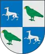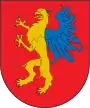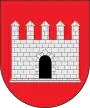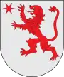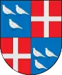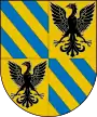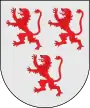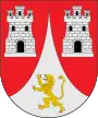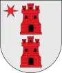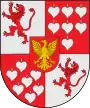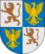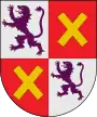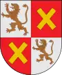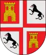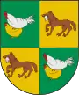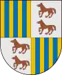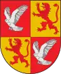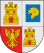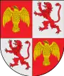 Cuartelado: 1 y 4 de gules, halcón de oro; 2 y 3º de plata, león de gules. |