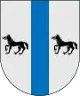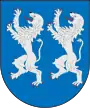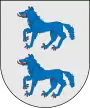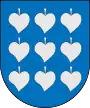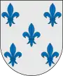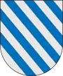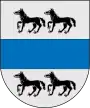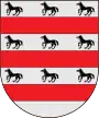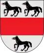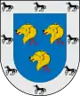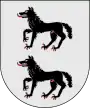 De azul, tres fajas de plata, cargadas de nueve lobos de sable 3, 3, 3. |