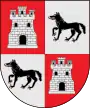 - En otros: 1 y 4 de plata, torre al natural; 2 y 3 de gules, lobo al natural.