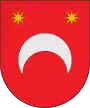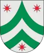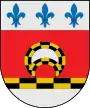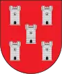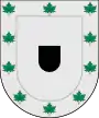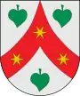 De gules, carbunclo cerrado pomelado de oro, una esmeralda verde (en forma de losange) en abismo. Timbrado de una corona de tres florones. |