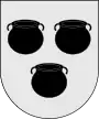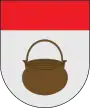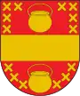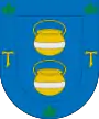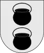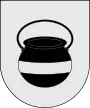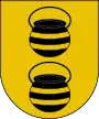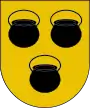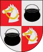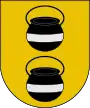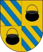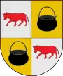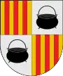 Cuartelado: 1 y 4 de oro, tres palos de gules; 2 y 3 de plata, caldera de sable. |