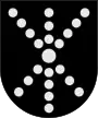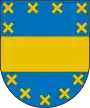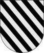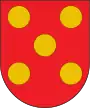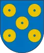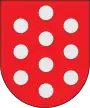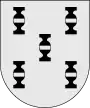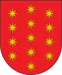 De sable, veintiún bezantes de plata en palo y en aspa. |