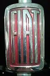 ![]() | 1931 | 1932 | Rectangular | Rojo | Fiat 524 | En los años 1930 el radiador se va abandonando en favor de la parrilla, concebida no solo con función estética sino también como mejora aerodinámica. En 1931 se presenta un nuevo logotipo, insertado coherentemente en el diseño del automóvil, con una plancha esmaltada vertical y tipografía que acentúa dicha esa verticalidad. El nuevo logotipo cambia su forma radicalmente, de redonda a rectangular con elementos verticales. Se adoptado por primera vez por el Fiat 524. | |