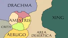 Se menciona solamente en el capítulo 78 del manga de parte de Farman con Breda por teléfono, que queda al sur del país de Amestris, al lado de Aerugo; diciendo que ahora está en guerra con Amestris junto con Aerugo.