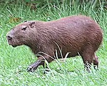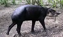 Los ungulados de dedos extraños son mamíferos que pastan y pastan . Por lo general, son grandes a muy grandes, y tienen estómagos relativamente simples y un dedo gordo del pie medio. Si bien los équidos nativos alguna vez vivieron en la región, habiendo evolucionado en América del Norte durante un período de 50 millones de años, se extinguieron en el momento de la primera llegada de los humanos, junto con al menos un ungulado de origen sudamericano, el notoungulado, Mixotoxodon . La secuenciación de colágeno de un fósil de un notoungulado recientemente extinto ha indicado que este orden estaba más cerca de los perisodáctilos que cualquier orden existente de mamíferos. [7]