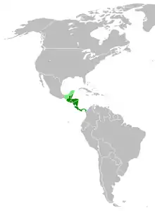 En la actualidad, América Central une América del Norte y del Sur, facilitando el tránsito en ambas direcciones, pero este fenómeno es relativamente reciente desde una perspectiva geológica. La formación de este puente terrestre a través de la actividad volcánica hace tres millones de años precipitó el Gran Intercambio Americano, un evento biogeográfico importante. En parte debido a esta historia, América Central es extremadamente biodiversa ; comprende la mayor parte del punto de acceso a la biodiversidad mesoamericana . [1] Las montañas que se extienden por la columna vertebral de América Central también han contribuido a la biodiversidad al crear hábitats montañosos, incluidos bosques nubosos y praderas, y al separar especies de las tierras bajas a lo largo de las costas del Pacífico y el Caribe . Sin embargo, la biodiversidad de América Central sufrió un golpe en el evento de extinción del Cuaternario, que comenzó alrededor de 12,500 cal BP, aproximadamente en el momento de la llegada de los paleoindios ; Gran parte de la megafauna se extinguió en este momento. Los efectos de las actividades humanas modernas sobre el clima y la integridad del ecosistema representan una amenaza adicional para la fauna de América Central.