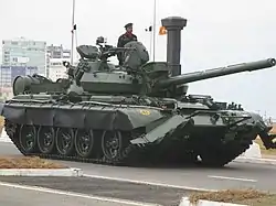 T-90A | ![]() | Tanque de batalla principal. Algunos T-90AS fueron vistos durante la Quinta ofensiva de Alepo, el 29 de noviembre de 2015. Cabe mencionar que Rusia suministró al ejército sirio con tanques modelo 1992. A finales de 2015, Rusia entregó a Siria tanques T-90 en la versión AS para combatir al ejército islámico. [17] [18] [19] | 15 | ![]() |