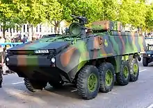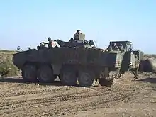 Vehículo de combate de infantería Piranha IIIC 8x8 (39: 26 de combate de infantería, 2 de mando, 1 ambulancia, 1 de recuperación, 1 de guerra electrónica, 4 de zapadores y 4 de reconocimiento con cañón de 30 mm).