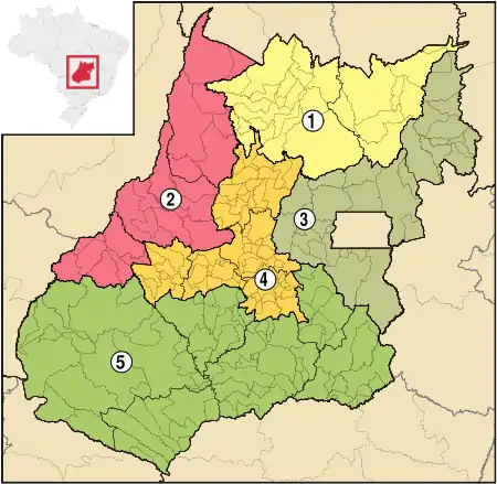 El estado brasileño de Goiás está dividido en cinco mesorregiones: