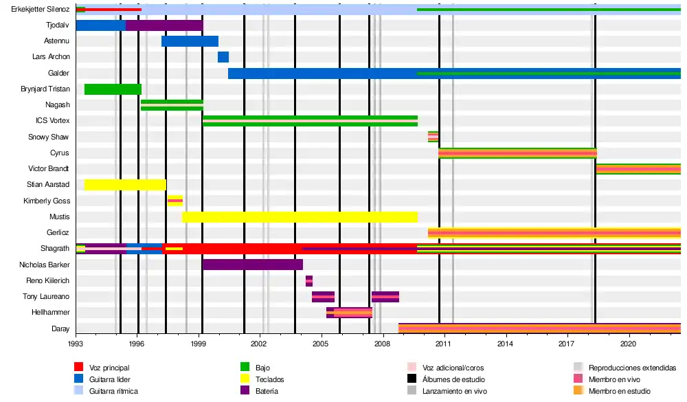 - Participación: En los álbumes musicales desde Spiritual Black Dimensions hasta In Sorte Diaboli.