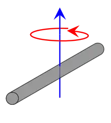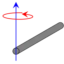 Esta expresión supone que la varilla es un alambre infinitamente delgado (pero rígido). Este también es un caso particular de una placa rectangular delgada con eje de rotación en su centro, con h = L y w = 0. |