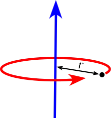 Una masa puntual no posee un momento de inercia alrededor de su propio eje, pero utilizando el teorema del eje paralelo se obtiene un momento de inercia alrededor de un eje distante de rotación. |