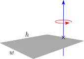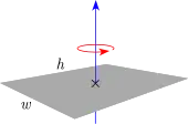 Placa rectangular delgada de altura h, ancho w y masa m (eje de rotación en el centro) | ![]() |
