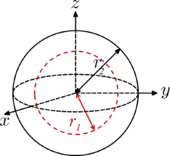 Se puede considerar que una esfera hueca está formada por dos pilas de anillos infinitesimalmente delgados, circulares, donde el radio difiere de 0 a r (o una sola pila, donde el radio difiere de −r a r). |