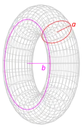 Toroide con radio menor a, radio mayor b y masa m. | ![]() |