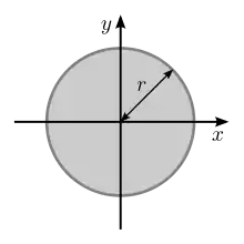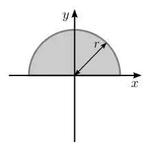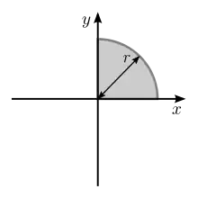 Un cuarto de círculo de radio r contenido en el primer cuadrante | ![]() | |||