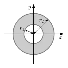 Un anillo de radio interno r1 y radio externo r2 | ![]() | Para tubos delgados, y . Podemos ver que y a fortiori, para un tubo delgado, .