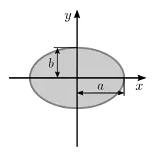 Una elipse maciza cuyo semieje paralelo a x es a y cuyo semieje paralelo a y es b | ![]() | |||