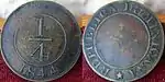 1/4 de Real | 1844, 1848 | Latón | 23 mm | 9.375 g | Valor facial y Año de acuñación | Inscripción: República Dominicana | ![]() | |