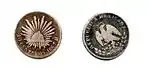2,50-4,00 | 17,00-18,00 | Cu | "8 D” y escudo nacional. | "LIBERTAD" radiante y año de acuñación. | Estriado oblicuo. | 1824, 1828. | Victoria de Durango. | Durango. | ![]() |