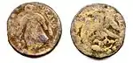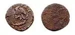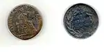 - Moneda de Nahuatzen (Michoacán) resellada.