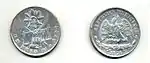 10,36 | 27,24 | Cuproníquel (Cu+Ni) | Escudo de armas mexicano y nombre oficial del país: ESTADOS UNIDOS MEXICANOS. | Cabeza del dios Quetzalcóatl. | "INDEPENDENCIA Y LIBERTAD". | 1975-1985. | México. | |