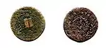 ? | ? | Plomo | "PART. DE LA SOCIED. MERIDA DE YUCATAN 1858". | "1/2 GRANO DE PESO FUERTE"[6] y adorno floral. | ? | 1858. | Mérida. | Yucatán. |