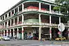Conjunto de residencias del barrio Nuevo Cristóbal | "Nuevo Cristóbal fue el gran proyecto residencial de la Zona del Canal en Colón. Abarcó el cuadrante nordeste de la isla Manzanillo, y es el único sector del centro histórico que no sigue una planta estrictamente octagonal. La primera etapa estaba concluida en 1919, pero de esta época no queda nada. El Nuevo Cristóbal que existe hoy, mayormente protegido por la Ley 47 de 2002, consta de casas tipificadas de construcción mixta diseñadas por Meade Bolton en 1929. La distribución de las casas es muy holgada, ya que estas ocupan, como máximo, un 40% de los lotes. La arquitectura de los ensanches al sur de Nuevo Cristóbal, que surgieron en los años 30 y 40, es mucho más heterogénea que la del Casco Antiguo. La traza, para empezar, es distinta. Cada nueva manzana de los ensanches estaba dividida en tres áreas mediante dos callejones: uno en sentido este-oeste y el otro en sentido al del Casco Antiguo, y hay ciertas variaciones en los tamaños: los anchos fluctúan entre 40 y 52.5 pies. Los retiros entre los Edificios también son más espaciosos y se pueden utilizar como cómodas veredas".[10] | Avenida Meléndez con calle 7ª, calle Portobelo, calle 5ª, calle Monte Lirio y calle Escobal, manzanas 115 a 119 y 178 a 183, Colón. | Colón | |
