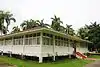 Casa Chen | Construida en 1904, es una de las casas más antiguas de la Provincia de Bocas Del Toro y modelo característico de la arquitectura en madera de la ciudad. Fue erguida por Karl Friese, un comerciante alemán. Está levantada parcialmente sobre el agua, de planta rectangular y de dos plantas. Posee una gran terraza trasera y un empinado techo a cuatro aguas. La distribución de la planta baja es en forma de una T con un vestíbulo y un pasillo central y la planta alta se divide en cuatro dormitorios.[2] | Bocas del Toro |