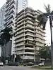 Edificio Multifamiliar Las Cuatro Potencias: Chagres, Donoso, Santa Isabel y Portobelo | Conocidos como las Cuatro Potencias fueron diseñados por los arquitectos Rosa Palacio y Stephen Arneson en 1946-48. De racionalismo extremo, se proyectaron como edificios tipo en hilera rompiendo con el tradicional concepto de manzana cerrada.[2]