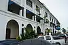Edificio Riviera | Fue construido sobre los lotes 1 y 2 de la manzana 106. Se desconoce el arquitecto, aunque guarda cierto parecido con el edificio Riviera en Bella Vista en la ciudad de Panamá, construido en 1935-36 según planos de Wright & Schay. Su dueña original fue Gertrudis Heitlinger de Goldstein (después de Gill), y el edificio fue inscrito en 1947. En 1949 lo traspasó a su marido Irvin (o Irving) Hill, quien en 1967 compró los dos lotes, hasta ese entonces propiedad del IFE. Después pasó a la Inmobiliaria Riviera, S. A., y finalmente a la Inmobiliaria Alambra, S.A. Hoy se encuentra en buen estado. El edificio conserva su volumetría y elementos constructivos y decorativos originales. La carpintería original de las ventanas ha sido reemplazada a lo largo de la vida del edificio y se denota algún grado de deterioro en los aleros del techo principal.[10] | Calle 4ª y Avenida Meléndez, Colón. | Colón | |