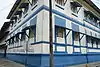 Escuela República de Bolivia | La escuela República de Bolivia construida en 1954, es un proyecto del Arquitecto Ricardo J. Bermúdez. Se desarrolla a partir de un gran patio, arqueado hacia el norte y sur por dos alas largas y estrechas. No hay evidencia de problemas estructurales más allá de fisuras en algunas vigas. Se observan falta de repello en algunas paredes y deterioro de los acabados de pisos y de los baños. Así como, corrosión leve en elementos metálicos. Algunos elementos nuevos (anexos y acabados) han afectado la apariencia sencilla y austera original del conjunto.[10] | Colón. | Colón | 9°21′19″N 79°53′52″O |