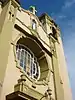 En Bocas del Toro ha predominado el estilo caribeño no solo en las viviendas unifamiliares, sino también en la arquitectura religiosa, civil y las logias, que fueron construidas para realizar congregaciones y reuniones en general. En lo que respecta a la arquitectura religiosa, la misma tiene influencia diversa, eran comunes las iglesias de madera, con torres de madera y con los mismos elementos arquitectónicos de las viviendas unifamiliares. Debido a los desastres naturales , como los huracanes y a los incendios ocurridos en la provincia, sus habitantes se vieron obligados a construir nuevos templos con materiales menos perecederos como el concreto.[1] Construido en 1907 por el arquitecto Napoleón Casalli. De proporciones sólidas y monumentales, parecida a la arquitectura de esa época, en el Casco Antiguo de la ciudad de Panamá.[2] |