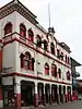 Cuartel de Bomberos de Colón | La primera piedra del edificio, bendecida por el Cura Párroco Juan Bautista Echániz Landa, fue colocada el 1 de mayo de 1872. El Cuartel fue inaugurado el 2 de febrero de 1873, siendo bendecido también por el Cura Párroco Juan Bautista Echániz Landa. El edificio fue inaugurado en julio de 1947, durante la celebración del cincuentenario de fundación del Cuerpo de Bomberos de Colón (Villani 1947). Se trata de uno de los principales ejemplos del art déco en la ciudad; la volumetría se desarrolló a partir de dos pilones simétricos que flanquean la entrada, disposición que se repite en otros edificios de la época. El anexo lateral hacia el este desvirtúa el concepto arquitectónico original.[10] | Colón. | Colón | 9°21′23″N 79°53′54″O |