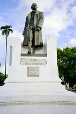 A Ignacio de Herrera y Vergara | 20 de julio de 1927 | Antonio Rodríguez del Villar | Carrera 5 con Calle 19. Plaza 20 de julio. Barrio San Nicolás 3°27′15.58″N 76°31′32.77″O | Escultura pedestre de bulto redondo en bronce fundido. Pedestal en cemento con hornacinas en los lados. |