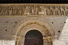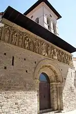 Una de las más llamativas iglesias románicas españolas, construida a mediados del siglo XII, por el maestro Frunchel. La sobresaliente fachada resume iconográficamente la revelación apocalíptica de Juan Evangelista en Patmos, según la cual cuatro animales rodeaban a un Sedente sobre un trono, y a estos circundaban ancianos. Es la visión del Dios sedente con el Libro de la Vida, de los Evangelistas y de los Apóstoles custodios de las doce puertas de la Jerusalén celeste. Una arquivolta muestra prodigiosamente variados oficios de la época.