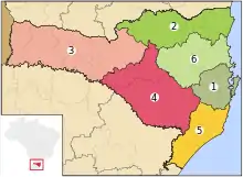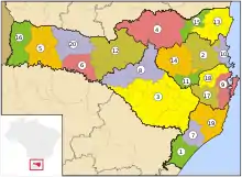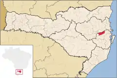 El estado brasileño de Santa Catarina se organiza adminstrativamente a nivel local en 295 municipios (se crearon otros dos municipios aunque no han sido implantados). El gobierno de cada municipio es responsable de tratar con los deberes locales. La administración del municipio está dirigida por un prefecto (prefeito), un Ayuntamiento (Câmara de Vereadores) y un Fórum Municipal.