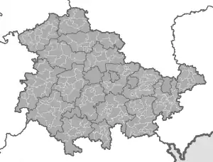 Abtsbessingen [→∞Ebeleben], Bachfeld [→∞Schalkau], Bellstedt [→∞Ebeleben], Bollberg [→∞Stadtroda], Buttlar [→∞Geisa], Caaschwitz [→∞Bad Köstritz], Crawinkel [→∞Ohrdruf], Crimla [→∞Weida], Diedorf [→∞Kaltennordheim], Donndorf [→∞Wiehe], Eberstedt [→∞Bad Sulza], Empfertshausen [→∞Kaltennordheim], Etzelsrode [→∞Bleicherode], Freienbessingen [→∞Ebeleben], Friedrichsthal [→∞Bleicherode], Gerstengrund [→∞Geisa], Goldisthal [→∞Neuhaus del Rennweg], Görsbach [→∞Heringen del Helme], Gösen [→∞Éisemberg], Gräfenhain [→∞Ohrdruf], Graitschen [→∞Bürgel], Großheringen [→∞Bad Sulza], Hainspitz [→∞Éisemberg], Hartmannsdorf (bei Gera) [→∞Bad Köstritz], Henneberg [→∞Meiningen], Heyersdorf [→∞Gössnitz], Holzsußra [→∞Ebeleben], Kehmstedt [→∞Bleicherode], Kleinbodungen [→∞Bleicherode], Ködderitzsch [→∞Bad Sulza], Kospoda [→∞Neustadt del Orla], Kraja [→∞Bleicherode], Langenwolschendorf [→∞Zeulenroda-Triebes], Leimbach [→∞Bad Salzungen], Linda bei Neustadt an der Orla [→∞Neustadt del Orla], Lipprechterode [→∞Bleicherode], Luisenthal [→∞Ohrdruf], Mertendorf [→∞Éisemberg], Möckern [→∞Stadtroda], Nausitz [→∞Bürgel], Neumühle [→∞Greiz], Niedergebra [→∞Bleicherode], Niedertrebra [→∞Bad Sulza], Obertrebra [→∞Bad Sulza], Petersberg [→∞Éisemberg], Ponitz [→∞Gössnitz], Poxdorf [→∞Bürgel], Quirla [→∞Stadtroda], Rannstedt [→∞Bad Sulza], Rauschwitz [→∞Éisemberg], Rippershausen [→∞Meiningen], Rockstedt [→∞Ebeleben], Ruttersdorf-Lotschen [→∞Stadtroda], Saaleplatte [→∞Bad Sulza], Sachsenbrunn [→∞Eisfeld], Sankt Kilian [→∞Schleusingen], Schleid [→∞Geisa], Schmiedehausen [→∞Bad Sulza], Seebach [→∞Ruhla], Stanau [→∞Neustadt del Orla], Stepfershausen [→∞Meiningen], Sülzfeld [→∞Meiningen], Thüringenhausen [→∞Ebeleben], Untermaßfeld [→∞Meiningen], Urbach [→∞Heringen del Helme], Weißendorf [→∞Zeulenroda-Triebes], Wipfratal [→∞Arnstadt], Wolferschwenda [→∞Ebeleben] y Wölfis [→∞Ohrdruf].