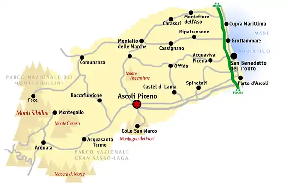 Ésta es una lista de las 33 comunas de la provincia de Ascoli Piceno, Marcas, en Italia.[1]