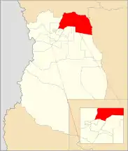 Santa Rosa | Santa Rosa | 25 de febrero de 1885 (promulgación de ley)[26] | Por división del departamento Junín. Se llamó Chacabuco entre 1889 y 1892/1894 | 50112/500112 | 16 374 | 8510 | 1.92 | 6 | * Doce de Octubre * El Marcado * La Dormida * Las Catitas * Ñacuñan | ![]() | 10 |