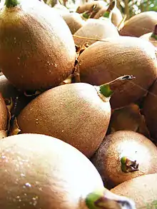 Nuez maya | Brosimum alicastrum | Semilla de Drupa | La parte carnosa de la drupa también es comestible. | ![]() Frutos maduros del Brosimum alicastrum recogidos en Belice. |