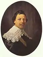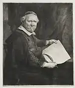 90 | ![]() | Portrait of Johannes Wtenbogaert | 1633 | Oil on canvas | 123 x 105 | Rijksmuseum Amsterdam | Rembrandt and workshop. The hands seem to be painted by a member of the workshop |