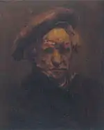 322 | ![]() | Self-portrait with Beret | 1669 | Oil on canvas | 71 x 54 | Uffizi, Florence | Strips of c. 15 cm may have been removed on all four sides as early as the seventeenth century to accommodate the painting in an assemblage of self-portraits owned by the Medici family. The painting is now almost hidden behind a strongly discoloured or tinted layer of varnish under which there also seem to be extensive overpaintings |