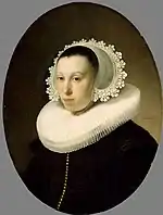 74 | ![]() | Portrait of a 39-year-old Woman | 1632 | Oil on panel | 74.5 x 55 | Nivaagaards Malerisamling | The hand and the booklet were added by another painter |