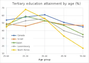 Esta es una lista de países por población de entre 25 a 64 años que han completado la educación terciaria según lo publicado por la OCDE. Incluye algunas naciones que no pertenecen a la OCDE.